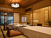 伝統を守りながら時代に寄り添い、次の世代につなぐことをコンセプトに、季節の移ろいに合わせて意匠を凝らした和の設え、数寄屋建築の空間の中で、お料理と共に特別な時間をおもてなしします。店内は、お座敷6室(32名)で構成され、新しい料理を追求しつつ料亭としての伝統を守る会席料理が特色。前菜・椀盛・造りから御飯・水菓子までのコース(約60,000円)を提供し、接待や海外からの観光客に喜ばれています。